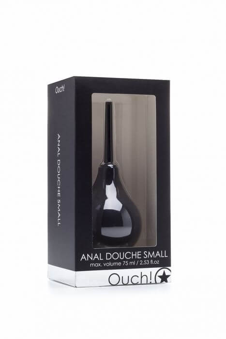 Ouch Anal Douche Small Black. Volume capacity 2.53 fluid ounce. Phthalate free materials ABS plastic, PVC.