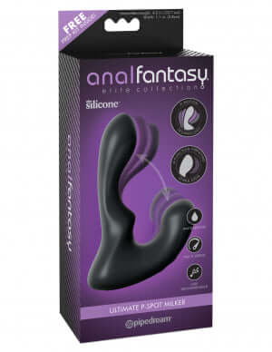 Anal Fantasy Elite Collection Ultimate P-Spot Milker Black Prostate Massager. When you are looking to take your anal play to the next level, the Anal Fantasy Elite Collection is the premier choice for high end anal arousal and prostate play. Made from our ultra hygienic Elite silicone, the Elite Collection is body safe, phthalate free, latex free and made to play hard. Using the latest in USB rechargeable technology, the Elite Collection plugs and probes are ergonomically designed for maximum comfort and guaranteed satisfaction. Perfect for any gender, the unisex collection comes packed with mind blowing features that offer incredible thrills and explosive results! 9 vibration functions. Vibration, pulsation, escalation there are plenty of options for powerful pleasure. Fully automated prostate massage a powerful internal motor provides 9 variations of movement to rub, stroke and caress your prostate and perineum spot. USB Rechargeable ready when you are! Easily and conveniently rechargeable offering hours of enjoyment. Experience the ultimate in prostate play with the incredible Anal Fantasy Elite Ultimate P-Spot Milker. This unique prostate pleaser offers true innovation with a fully automated massaging system to simultaneously stroke your prostate and rock your perineum. For a custom experience every time, the Anal Fantasy Elite Ultimate P-Spot Milker’s cleverly curved tip offers come hither massage movements that allow the base to rock back and forth and apply pressure against the perineum. Each thrilling vibration pattern tickles, teases, and caresses the prostate, delivering rock hard erections and explosive ejaculations every time! Your experience is further heightened with a powerful vibrating bullet located at the tip of the p-spot milker that features nine thrilling pulsation patterns. The ergonomic design allows for extended wear during solo sessions or partner play. Free 4 piece prep kit included! Size length 5.5 inches, width 4.1 inches, insertable length 4.2 inches. Weight 4.6 ounces.