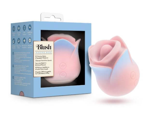 Inspired by romance and crafted for indulgence, the Kissing Rose from the Blush Collection invites you to explore deep, customizable pleasure. This elegant clitoral vibrator features 10 vibration modes (3 speeds & 7 patterns) and 3 sensual ‘French Kiss’ settings that mimic the gentle, rhythmic motion of a lover’s tongue. Let stimulation build arousal with every soft, teasing movement, warming up, edging, or indulging in a slow, satisfying climax. Made from 100% body-safe silicone with a smooth UltraSilk® finish, the Kissing Rose is designed for comfort, beauty, and pleasure. Sculpted petal-like ridges add a textured touch that enhances every pulse and movement, surrounding you with soft, layered sensation. Compact, splashproof, and magnetic USB rechargeable, it fits seamlessly into your self-care routine and is easy to use, clean, and store. Let your pleasure unfold, kiss by kiss.Buy it now10 Vibration Modes (3 Speeds & 7 Patterns)3 Sensual ‘French Kiss’ Stimulation SettingsSeductive Petals For Enhanced Clitoral Pleasure100% Body-Safe Silicone, UltraSilk® Satin SmoothSplashproof & Magnetic USB RechargeableColor: PinkMaterial: ABS / SiliconeLength (Inches): insertable , 2.75Circumference (Inches):Battery Runtime: Up To 60 Minutes