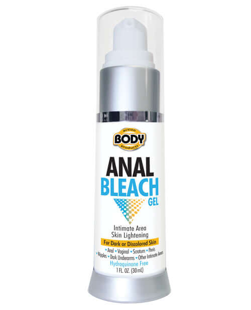 Body Action Anal Bleach Gel 1 ounce Bottle Counter Top Display 6 Pieces. Body Action Anal Bleach Gel for anal, vaginal, penis, scrotum, nipples, dark underarms. Other intimate areas.Body Action Anal Bleach Gel is a super concentrated intimate area skin lightening gel.It is formulated to help improve the appearance of uneven skin tone and diminish discolored areas of the skin. Ideal for anal, vaginal, penis, scrotum, nipples, dark underarms and all other intimate area skin lightening needs. Please note shown as 1 ships as 6 piece display.