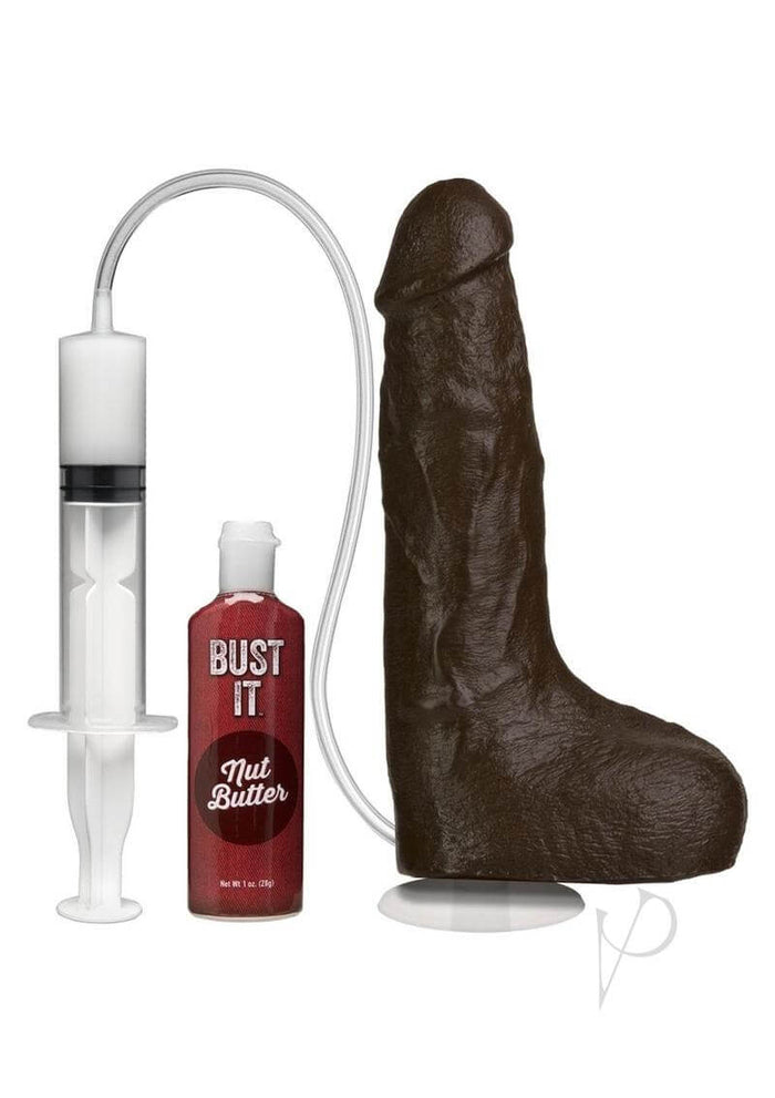 Experience the ultimate in lifelike pleasure with the Bust It Squirting Realistic Dildo 8.5 inches Black. Designed to replicate every detail of a real erect penis, this dildo goes beyond ordinary play by offering an unforgettable squirting feature. With the included creamy Nut Butter that mimics the look and texture of real cum, you can enjoy highly realistic ejaculation on demand.
