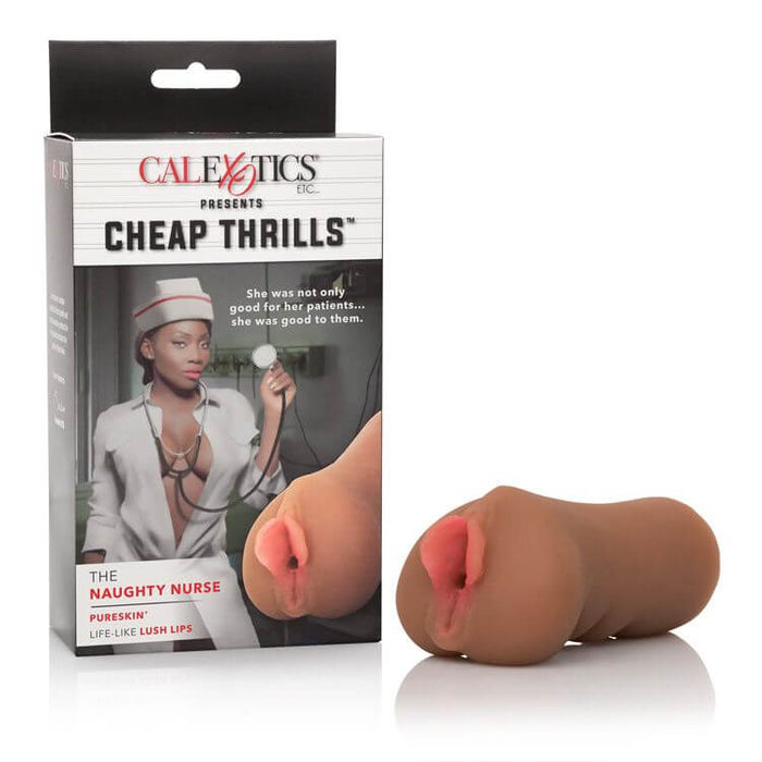 Cheap Thrills The Naughty Nurse brown pussy stroker. Amazingly life like design means the ultimate in sensual pleasure. With this deliciously silky, plush experience, you will want more, and more. Easy to use and easy to clean, this beautiful product is maintenance free and requires no special care. Perfect look, perfect feel, almost like the real thing! A perfect fit is all yours with this stretchy and comfortable delight. The erotic stroker has an inviting super tight parted lips opening and an internal chamber that delivers intense suction and satisfaction. To experience ultimate ecstasy, slide your shaft deep inside and allow the pliable chamber to engulf you. Apply stimulation by sliding and gliding the sleeve back and forth. To extend your orgasmic enjoyment always use a quality lube with this toy. The chamber is ideal for first time and experienced users, and perfect for indulgent self gratification. Before and after play, clean the textured stroker with a toy cleaner spray or wash in mild soapy water. 90 days warranty. Specifications Pure pleasure is yours, but keep this device out of the water as it is not water resistant. Bulk weight 5.7 ounces. Materials Thermoplastic Rubber TPR. Measurements 4.75 inches by 2.25 inches.