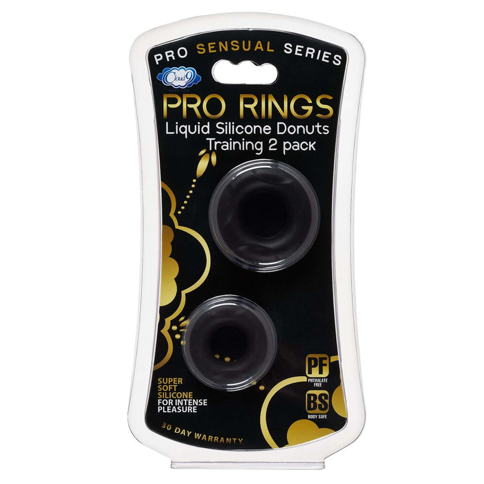 Cloud 9 Pro Sensual Pro Rings Donuts 2 Pack. This innovative Performance Donut Cock ring is designed to help enhance erection and optimize staying power. This unique Donut shaped cock ring features two sizes for training. Wear one or two) based on your own preference. Performance Cock Rings are soft and stretchy to fit any man and stimulate your partner. Designed to fit for a tailored, snug fit without pinching during use. Increase your erection size and heighten sensitivity during sex and solo play with this stretchy cock ring set. Do not use silicone-based lubes. Made from latex and phthalate free premium silicone. Extra thick seamless design for comfort. Features: comfortable soft Liquid Silicone. Performance Donut Rings are soft and stretchy. Designed to fit for a tailored, snug fit. Body safe Latex free, Phthalate free Silicone. Do not wear a cock ring for more than 30 minutes. Cock rings give you a longer lasting erection by trapping the blood supply in the penis and intensify orgasms. Cock rings are ideal for men with premature ejaculation or erectile dysfunction. Sizes small ring 12mm by 42mm e or approximately .47 inch by 1.65 inches.Larger ring 14mm by 51mm e or approximately .55 inch by 2.00 inches.