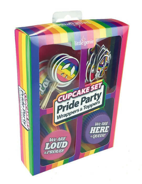 Little Genie Cupcake Set Pride. These fun cupcake sets are a must have for any party. Great for all occasions, Bridal showers, birthdays, girl's night out, and plain old fun! Contents: 24 cupcake wrappers with 2 different designs, and 24 toppers with 4 different designs.