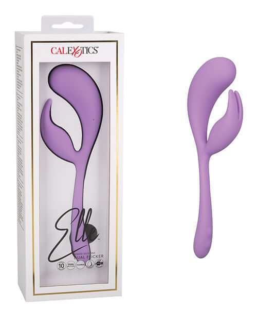 Elle Liquid Silicone Dual Flicker Rabbit Vibrator from California Exotic Novelties. Indulge in waves of pleasure as the Elle Liquid Silicone Dual Flicker moves you in all the right ways. The intimately contoured vibe is as thrilling as it is versatile with an extremely flexible body, flicking rabbit teaser, and 10 indulgent vibration functions. From steamy solo showers to hot times in the hot tub, get playful with the waterproof surface and powerful functions of vibration. The easy touch 2 button control lets you cycle through the knee shaking settings. While the easy touch buttons control the intensity and the vibe gives you the stimulation you want, the pliable body holds any position you desire. Recharge the premium Silicone teaser in 2.5 hours with the provided USB charging cable to enjoy 35 minutes of high speed stimulation or 90 minutes of low speed vibrations. The premium liquid Silicone is body safe, unscented and phthalate free that is softer, smoother, and more durable than tradition silicone. Specifications: SKU SE-4365-25-3. Color Purple. Power source USB Rechargeable, included. 1 year warranty. Material type Silicone. Features: phthalate free, Waterproof vibrations, Rechargeable Vibrator, Vibrates. Measurements 3 inches by 2 inches shaft. 2 inches by 0.75 inch stimulator. Bulk weight 2.7 ounces. Package 10.7 ounces. Package 2.5 inches by 3.5 inches by 10.5 inches. CalExotics - Categories: Home, Toys, Solo Play Toys, Vibrators, Stimulators. Cal Exotics - Elle Liquid Silicone Dual Flicker Vibrator.