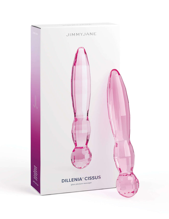Introducing the Jimmyjane Dillenia Cissus Glass Dildo from Pipedream Products, a masterpiece of sensuality and elegance. Crafted to perfection in the signature Jimmyjane color, this Borosilicate Glass dildo is a true work of art. Its bulbous tip offers exquisite pleasure during sensual insertion, while the non-porous and exceptionally strong glass ensures a safe and satisfying experience. With a wide adorned base for easy removal and versatility in temperature play, the Cissus Dildo elevates your intimate moments to new heights of pleasure. Explore its dimensions: Length 7.7 inches, Width 1.4 inches. Cleaning is effortless with Jimmyjane Antibacterial Cleaner, and its dishwasher-safe nature adds convenience to maintenance. Whether you're seeking anal stimulation, G-spot pleasure, or prostate massage, the Cissus Glass Dildo is designed to fulfill your desires. Indulge in the ultimate luxury and sophistication with the Jimmyjane Dillenia Cissus Glass Dildo, your key to unforgettable pleasure.