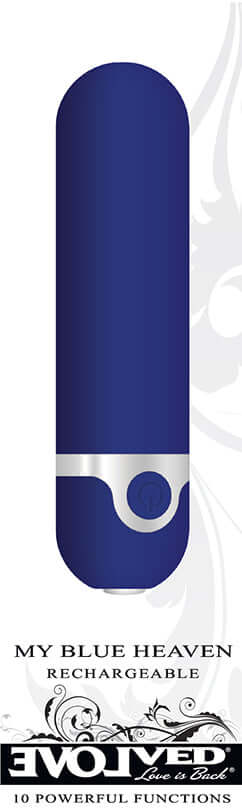 Discover true bliss with the My Blue Heaven Rechargeable Bullet Vibrator from Evolved Novelties. This powerful and discreet bullet vibrator boasts a vibrant blue hue and measures just a little longer than your average artillery, making it a perfect addition to your intimate arsenal.