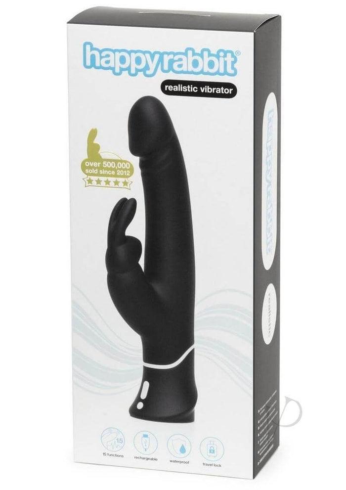 Happy Rabbit Realistic Silicone Rabbit Vibrator - Black