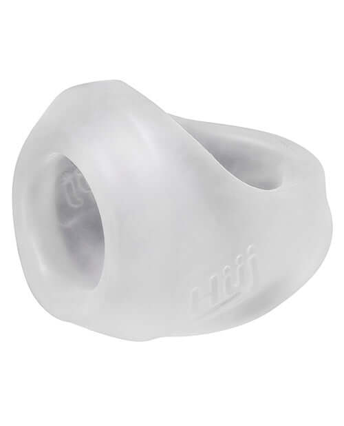 Hunky Junk Clutch Cock Ball Sling from Oxballs. We invented the first cock sling 8 years ago, every year we make new versions with a different fit and more features. Hunky Junk’s cock sling toy is designed to fit the Huj style. Clutch Cock Ball Sling is pure Hunky Junk. It has thicker walls for more support, more meat around the base of the shaft, more rubber surrounding the ball sack. The super soft material grips all the way around: more push it up and out, most importantly, it all makes for a bigger bulge! Clutch Cock Ball Sling has more cushion everywhere. It surrounds in rubbery thick support. It is heavy so you know it is there use for quick play or long wear. It fits so well you will want to show off! Clutch Cock Ball Sling just feels really good, put it on and be extra Huj! Our plus + silicone Thermoplastic Rubber TPR/silicone blend: silicone for a smooth and warm feel, TPR for amazing stretch and strength. Phthalate free. Stats approximate: width 2 inches, height 2.75 inches, depth 2.25 inches. Main hole circumference 4.25 inches, shaft hole circumference 3.75 inches. Ball hole circumference 3.5 inches. Bulk weight 1.6 ounces. Color Ice Clear.