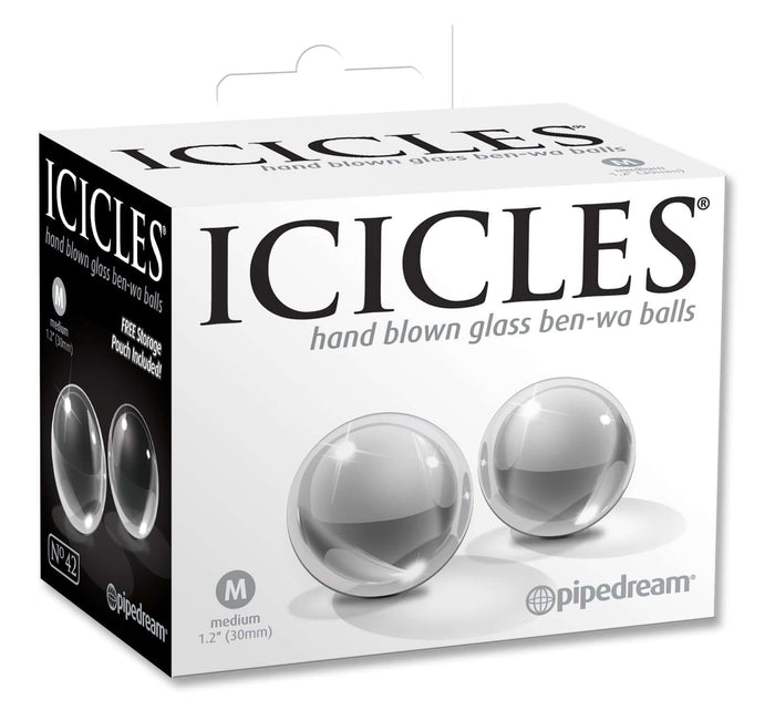 Experience an unmatched level of sophistication and pleasure with the Icicles Hand-Blown Glass Ben Wa Balls No.42. Crafted with precision and elegance, these exquisite borosilicate glass Ben Wa balls are a testament to timeless luxury. Designed for both stimulation and exercise, these medium-sized glass balls promise not only heightened pleasure but also enhanced muscle control and more intense orgasms.