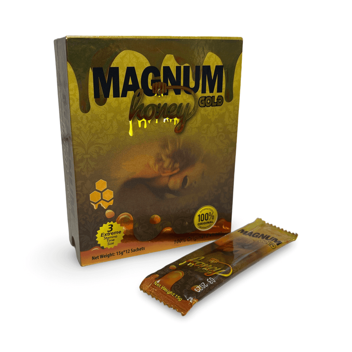 Magnum Gold Honey is a premium honey-based supplement crafted to support stamina, vitality, and confidence. Each 15g sachet combines natural herbal extracts with pure honey, offering a smooth taste and a convenient way to complement your wellness routine.