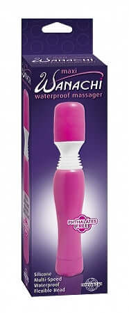 Maxi Wanachi Waterproof Massager the ever popular Wanachi vibe just got bigger! Enjoy powerful and soothing vibrations anywhere you go with this cordless massager. Powered by a whisper-quiet motor, the Maxi Wanachi massager is the premier choice for revitalizing tired muscles. The variable speed lets you choose your favorite setting to relieve tension and reduce muscle fatigue, giving your aching body the recharge it deserves. Perfect for home and travel! Colors may vary. Vibrating massager requires 2 C batteries, not included. Do not leave batteries in the vibrator between uses. A water based lubricant is recommended. Massager is made using phthalate free, non-toxic materials ABS plastic handle, Silicone head. Specifications: Item Length 9 inches (229 mm) Item Width 1.5 inches (38 mm) Item Height 1.5 inches (38 mm) Item Girth 5.75 inches (146 mm) Item Diameter 1.83 inches (46 mm). Item Package Depth 2.5 inches (6 cm) Item Package Width 3.25 inches (8 cm) Item Package Height 12 inches (30 cm) Item Packaged Weight 9.25 ounces (262 grams) Item Package Type Box.