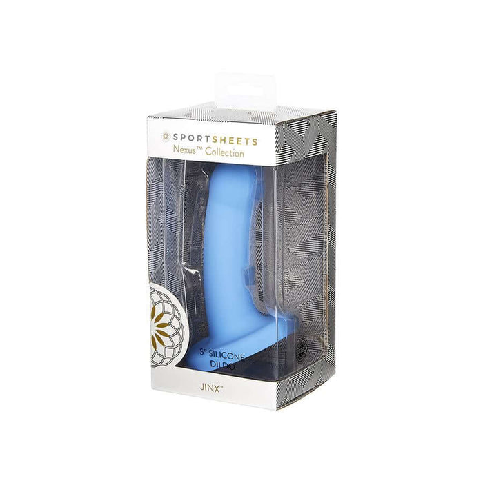 Introducing the Nexus Jinx Periwinkle 5-Inch Silicone Strap-On Dildo, designed for pleasure and versatility. This premium dildo is made from 100% silicone, ensuring it's phthalate-free, non-porous, and hypoallergenic, providing a body-safe experience you can trust.