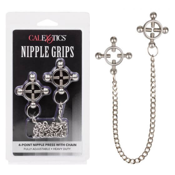 Take your pleasure to new heights with the Nipple Grips 4 Point Nipple Press with Chain from California Exotic Novelties. Elevate your nipple play and explore thrilling sensations with this versatile and adjustable nipple teaser set.