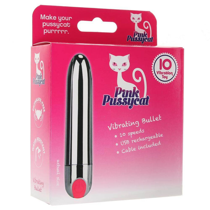 The Pink Pussycat Silver Bullet Vibrator is the perfect blend of power, portability, and playful pleasure, delivering intense sensations in a sleek, discreet design. Inspired by the famous Pink Pussycat Pill, the Pink Pussycat Silver Bullet Vibrator brings the same reputation for arousal and excitement into a compact toy designed to satisfy your deepest cravings. Despite its petite size, this rechargeable bullet offers incredible strength, making it ideal for solo stimulation, foreplay, or adding extra sparks to partnered play. With ten exhilarating vibration modes—including steady pulses, rhythmic throbs, and thrilling escalating patterns—the Pink Pussycat Silver Bullet Vibrator sends deep, targeted sensations straight through its smooth, tapered body. One-button control makes switching modes effortless, letting you focus entirely on pleasure instead of fumbling with complex controls. Perfect for beginners and experienced users alike, it's easy to slip into a purse, pocket, or travel bag for intimate fun wherever you go. Crafted from body-safe ABS plastic with a silicone control button, this bullet is splash-proof for exciting shower play but should not be fully submerged. The USB-rechargeable design eliminates the hassle of batteries, offering convenient, eco-friendly performance. Cleanup is simple: just wash with warm, soapy water or a toy-safe cleaner. Pair with your favorite water-based lubricant for an ultra-smooth glide. This petite powerhouse features: 10 powerful vibration modes One-button control USB rechargeable design (cable included) Water-resistant construction Portable size for discreet pleasure anytime Adorable, powerful, and undeniably satisfying, this silver bullet vibe will become your new go-to for quick stimulation, intense orgasms, or sensual warm-ups with a partner. Categories: Bullet Vibrators, Rechargeable Toys, Clitoral Stimulators, Portable Vibrators, Cousins Group Toys