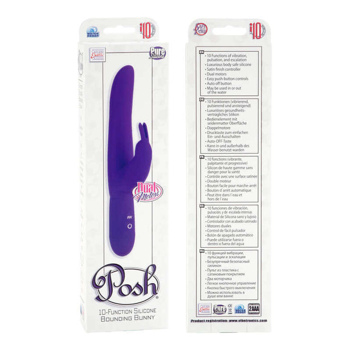 Elevate your intimate moments with the Posh 10 Function Silicone Bounding Bunny Purple Vibrator. Experience the perfect combination of luxurious design and powerful stimulation. Order yours today and discover new heights of pleasure.