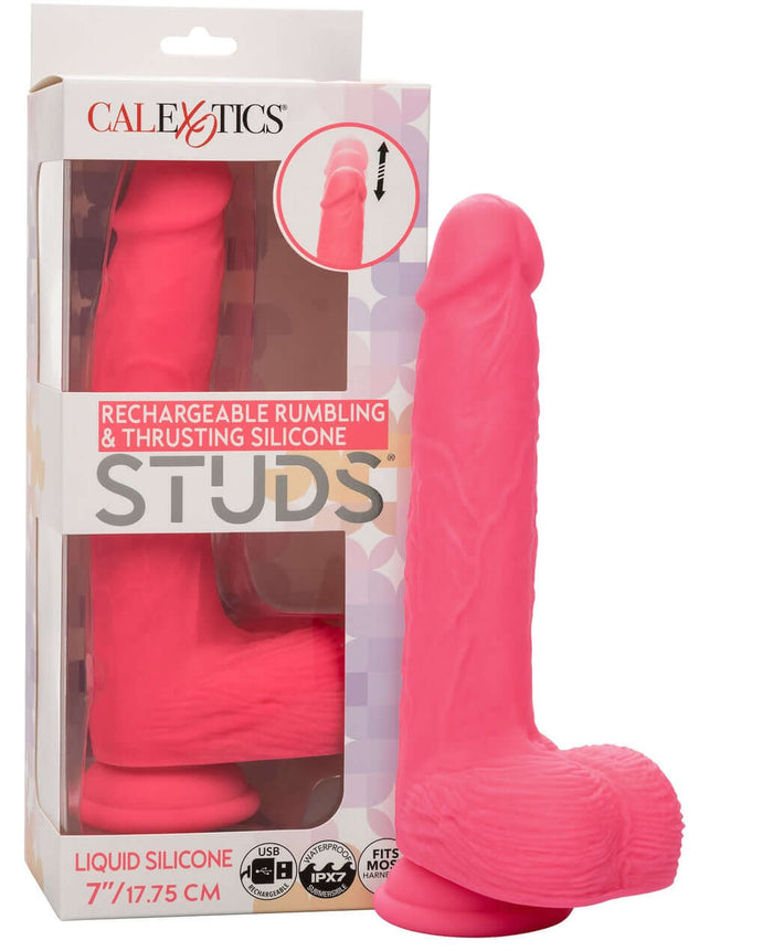 Unleash the ultimate in stimulation with the Rechargeable Rambling & Thrusting Silicone Studs®. Designed to satisfy even the most intense desires, this 7" (insertable) stud delivers deep rumbling vibrations combined with dynamic thrusting action, offering an unparalleled lifelike experience. Whether you're exploring solo or with a partner, this stud is perfect for those who crave robust and vigorous sensations.