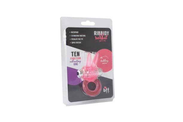 Ribbidy Rabbit Vibrating Cock Ring Pink from Si Novelties. Features 10 function. Waterproof vibrating cock ring. Made using body safe phthalate free materials Thermoplastic Elastomers TPE. Super stretchy. Tickling ears.