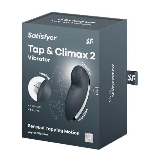 Tap into pleasure with the Tap & Climax 2. This lay-on vibrator treats your clitoris to double the fun with vibration and a tapping feature that allows for a more intense stimulation.Tapping-2 Clitoral stimulation through vibration and tapping motion Main-Feature-Icons_Gray_Silicone Made from high-quality super-soft silicone that intensively transmits powerful vibrations Main-Feature-Icons_Gray_Waterproof Thanks to its waterproof (IPX7) finish, this toy can be used safely in water and is easy to cleanSatisfyer Tap & Climax 2: Vibration & TappingThe Satisfyer Tap & Climax 2 has every feature of a classic lay-on and more: it stimulates your clitoris with intense vibrations, boasts an elegant look and has the perfect size for every handbag. Sounds good? Then get ready for the cherry on top: The Tap & Climax 2 also features 11 tapping programs that you can use to add a little extra to your solo time. Combine tapping and vibration or enjoy the features separately – no problem thanks to the independently controlled motors.Satisfyer Tap & Climax 2: Orgasm from tapThanks to the ergonomic shape of the Tap & Climax 2, this lay-on vibrator fits ideally in the palm of your hand and is also super easy to use: Just place the tip on your clitoris and activate the vibration or tapping functions with the touch of a button. Crafted from body-safe silicone, the Tap & Climax 2 feels irresistibly smooth against your skin. This material is hygienic and easy to clean with a little water, soap, and toy cleaner.
