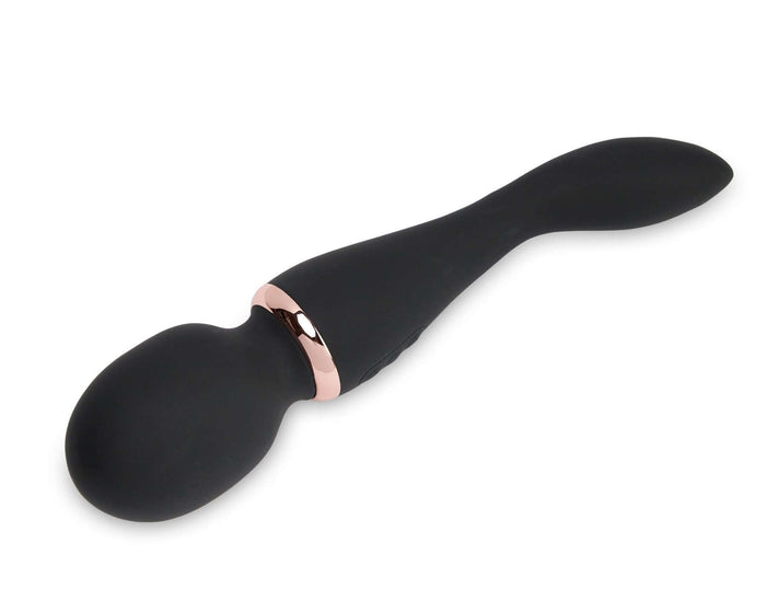 Sensuelle Alluvion Wand Black from Nu Sensuelle. The combination of power and versatility with two motors and dual ended for clitoral, G-Spot and anal stimulation. Features: two powerful motors, one in the head and one in the handle. Dual ended for clitoral, G-Spot and anal stimulation. XLR8 turbo boost increases the intensity to the highest setting for 12 seconds Hinge in the handle to follow the curves of your body. Sure, traditional wands only feature a single motor located in the toy’s head. But be under no illusion, the Alluvion is Dual Ended! The tapered handle, equipped with the new 60SX AMP motor, produces a thumping gyration that is powerful enough to make users feel as though they are vibrating from the inside out! Not to mention that it can effortlessly bend to conform to all body shapes and sizes, making it exquisite for G-Spot or anal stimulation. On the other hand, the Torrent motor located in the wand’s head produces a deeper vibration and works like a charm for clitoral stimulation. If the wand’s 12 unique vibration speeds per end are not enough to enchant you, true power users who are up for the challenge can take advantage of the wand’s XLR8 turbo boost feature, which increases the vibration intensity to the most powerful setting for 12 seconds. USB rechargeable, body safe and water submersible, the Alluvion’s magic touch defies everything you thought you knew about wand vibrators. Wand Massager is made with body safe, phthalate free medical grade Silicone. The thin strip near the head is ABS plastic.