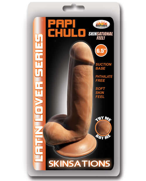 The Skinsations Latin Lover Papi Chulo 6.5 inches Brown Dildo delivers irresistible realism, lifelike texture, and sexy Latin-inspired curves designed to satisfy your deepest cravings. Crafted by Hott Products as part of the Latin Lover series, this chubby, straight-shaft dildo offers an incredibly skin-sensational feel that mimics the warmth and softness of the real thing. From the pronounced mushroom head to the faint, natural-looking veins, every detail is sculpted to heighten arousal and intensify your experience. Made from phthalate-free, body-safe materials, the Skinsations Latin Lover Papi Chulo 6.5 inches Brown Dildo provides peace of mind while you explore its fulfilling shape and smooth glide. Its sturdy suction cup base allows for hands-free fun on any flat, smooth surface—perfect for solo users who want to ride, grind, or thrust at their own pace. The base also makes it compatible with most O-ring harnesses for couples play, though stretchy silicone rings are strongly recommended to avoid pinching or material damage. Measuring 6.5 inches in total length with a satisfying girth, Papi Chulo offers a full, pleasurable stretch without becoming overwhelming—ideal for beginners and experienced users alike. For the most comfortable experience, pair it with a high-quality water-based lubricant to maintain the material’s suppleness and maximize your pleasure. Whether you're enjoying a heated solo session or spicing things up with your partner, this Latin lover is always ready to please. Bring home Skinsations Latin Lover Papi Chulo 6.5 inches Brown Dildo and indulge in deliciously realistic pleasure anytime you desire.