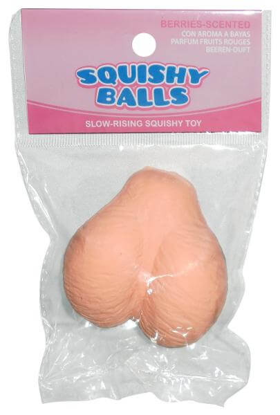 Squishy Balls Toy from Kheper Games. Slow rising 2.75 inches tall, berries scented squishy toy for adults. Made of slow rising PU material. Great fun as a party favor, stress relief, or humorous gift. Packaged in a durable and squeezable polybag.