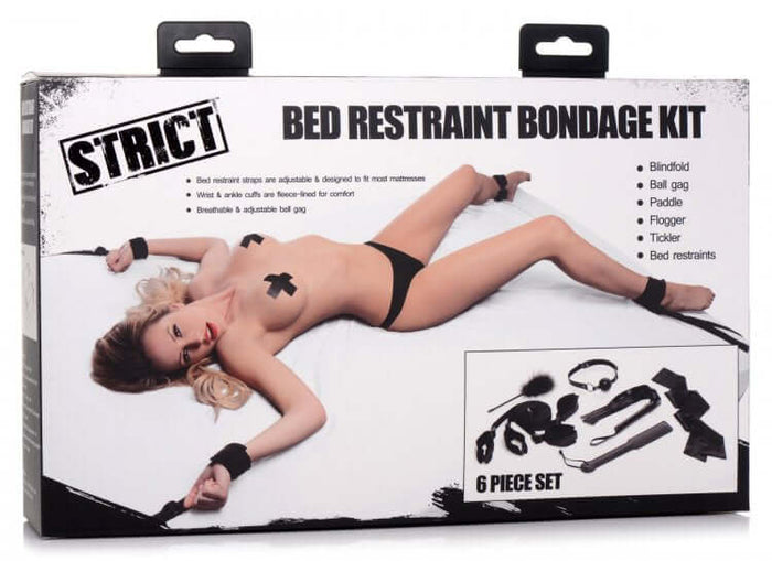 Embark on a journey of seduction, sensation, and surrender with the Strict Bed Restraint Bondage Kit. Explore your deepest desires and ignite the flames of passion in the bedroom. Remember, communication is key—always have a safe word when exploring the boundaries of pleasure. Elevate your intimate moments and order this comprehensive bondage kit today.