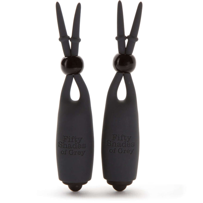 Experience the thrill of gentle sensations blossoming into tantalizing titillation with the Fifty Shades of Grey Sweet Torture Vibrating Nipple Stimulators from the Weekend Collection. This exquisite set of nipple teasers is powered by discreet bullet vibrators and enveloped in luxurious, velvet-soft silicone, promising an arousing adventure like no other.