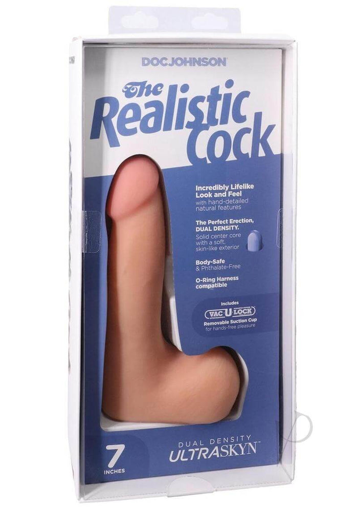 Experience lifelike pleasure with The Realistic Cock 7-Inch ULTRASKYN Vac-U-Lock Dildo. Molded from a real erect penis for maximum authenticity, this dildo delivers a truly realistic experience. The dual-density design features a soft exterior and firm core, while the textured veins enhance stimulation. Perfect for both solo play and partner use, the dildo is compatible with Vac-U-Lock and O-ring harnesses, and the removable suction cup base allows for hands-free fun. Made from phthalate-free, body-safe ULTRASKYN, this realistic dildo ensures comfort and safety with every use.
