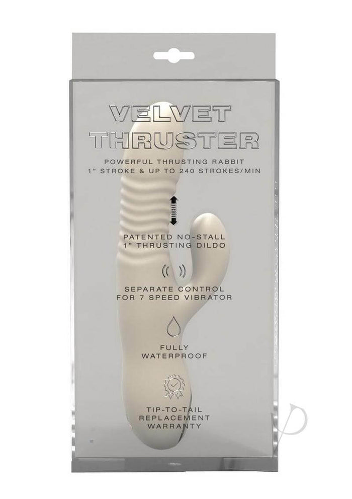 Experience unmatched stimulation with the Velvet Thruster Powerful Thrusting Rabbit Vibrator Vanilla, a compact handheld sex machine designed to deliver the intensity of a full-sized device right in your hand. Built for both solo sessions and partner play, this innovative rabbit vibrator combines powerful thrusting action with dual stimulation for your G-spot and clitoris, ensuring wave after wave of satisfaction.