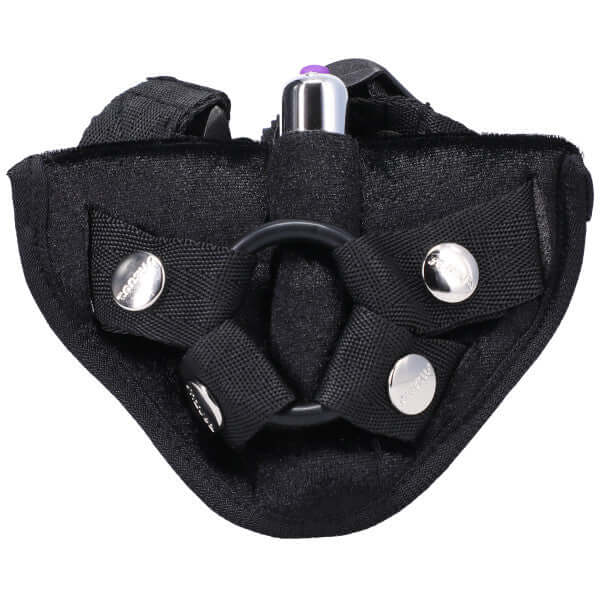 -  Waterproof Vibrator: The harness comes with a removable 1.5-inch O-ring, allowing for compatibility with different-sized toys. It also includes a waterproof One Touch Bullet Vibe for added stimulation, enhancing pleasure for both the giver and receiver.