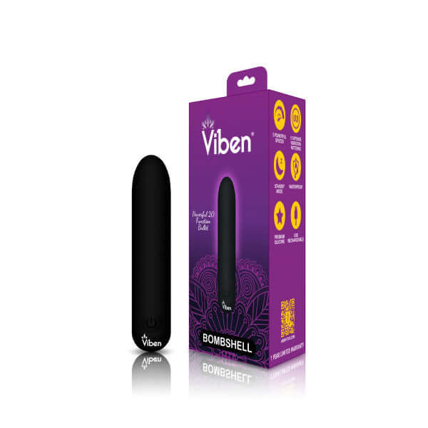 Introducing the Viben Bombshell Mighty Bullet Vibrator in sleek Black, the ultimate pleasure powerhouse that will detonate waves of ecstasy across all your erogenous zones. Crafted from luxurious and silky smooth silicone, this versatile bullet vibrator boasts a soft and flexible body, making it the perfect on-the-go companion for any occasion.