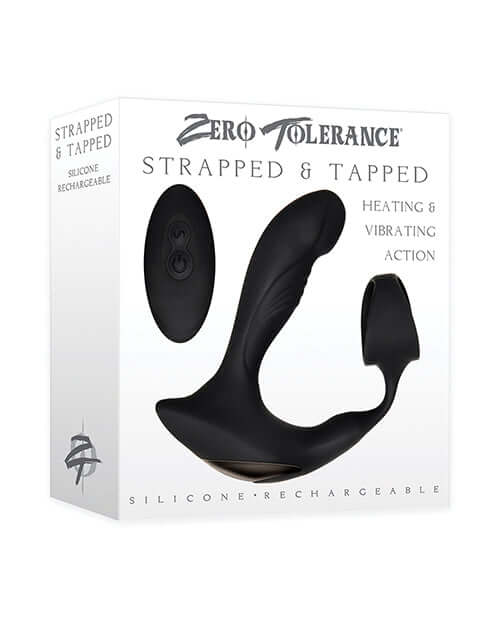 Zero Tolerance Strapped and Tapped Heating and vibrating actions Prostate Massager Black. Prostate stimulation during sex or oral sex has been proven to induce mind blowing orgasms for men, and this silky smooth vibrating prostate toy is ergonomically shaped to reach the P-Spot with ease! Flexible to move with your body. Slip it inside with plenty of lube and cycle through the 10 powerful speeds and pulsations to surround your prostate with a euphoric sensation that makes ejaculation feel even better! Pleasure nubs for erotic textured seneation. Easy grip handle that doubles as a safety base. Powered by the Zero Tolerance Rechargeable Bullet Vibrator that can be used with other Zero Tolerance men's toys, this prostate massager is completely waterproof vibrations. Totally submersible. Zero Tolerance Strapped and Tapped Prostate Massager is made from body safe phthalate free, latex free Silicone and ABS Plastic, Polyurethane PU Coating. It has a smooth, almost silky feel. Just add your favorite water based lubricant and have a wet and wild time. Not recommended to be used with Silicone based lubricant. Color Black. Materials Silicone shat and plug, ABS Plastic with Polyurethane PU Coating bullet vibrator. Prostate massager length 4.75 inches, depth 4 inches, width 1.25 inches. Bullet vibrator length 3 inches, width 0.75 inch. Rechargeable batteries via USB. Charge cable included. 5 years warranty.