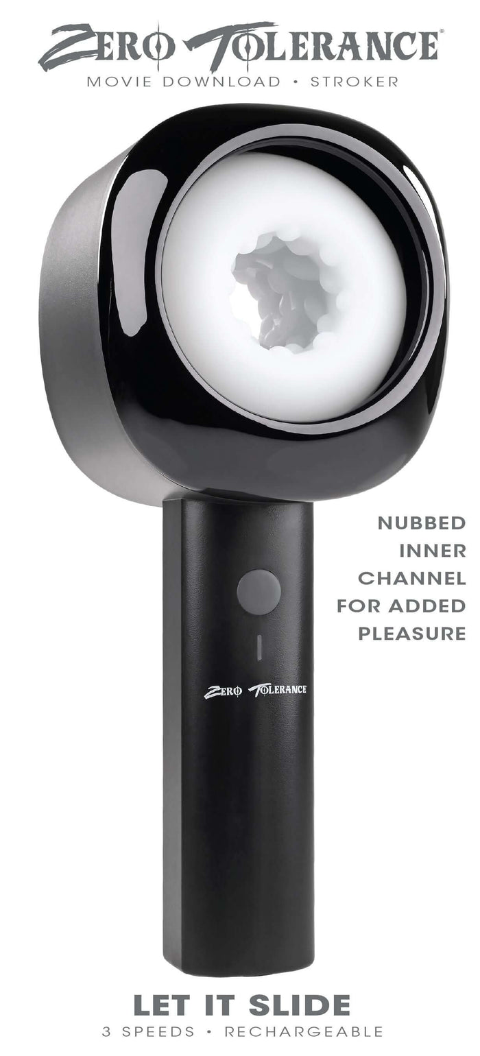 Zero Tolerance Toys Let It Slide Movie Download Stroker. Feeling stressed? Let It Slide. Grab this chunky ergonomic handle on this unique stroker, press the button and you are off to fantasy land. Let the motion slip and slide all around you while you relax and enjoy 3 stroking speeds. Not to mention the strokers interior adds a delicious texture a long the way. 3 speeds of vibration. Rechargeable via USB, cord included. Nubbed inner channel for added pleasure. Clean up by popping off attachment soft and stretchy stroker off. Washing with a toy cleaner and followed by a cool water rinse. Pat dry before storing. Rechargeable via a USB port. Made using the following materials body safe: ABS Plastic: Outer Shell, Stroker Case and Ergonomic Handle, Thermoplastic Elastomers TPE Stroker Sleeve. Battery type Lithium ion. Size total length 8.5 inches, 2.5 inches insertable. Sound level equal = to or less than <65dB. 5 years warranty. Categories: Solo Masturbators, Vibrators, Sex Toys for Men, Rechargeable Vibrators, Strokers, Male Masturbators. Please note the catalog page tells charging instructions and how to use Let It Slide Stroker.